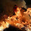 A man rides a horse through flames during the annual "Luminarias" celebration on the eve of Saint Anthony's day, Spain's patron saint of animals, in the village of San Bartolome de Pinares, northwest of Madrid, Spain, January 16, 2017.