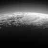 The dramatic backlighting and high resolution captured by the Ralph/Multispectral Visual Imaging Camera, which photographed the dwarf planet from 11,000 miles away, also reveals new details of hazes throughout Pluto’s “tenuous but extended” nitrogen atmosphere. (Source: NASA)