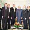 Prime Minister Manmohan Singh with Members of US House of Representatives pose for a group photograph during a meeting in Washington. (PTI)