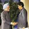 Prime Minister Manmohan Singh shakes hand with PepsiCo CEO Indra Nooyi at the USIBC meet, in Washington DC. PTI Photo (PTI)