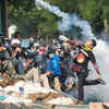Anti-government protesters hide behind wall as riot police fired tear gas to the protesters near the Government House in Bangkok. /news/world/protest-clashes-shake-thai-capital/eventshow/26748704.cms04