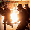 Portland police officers evade a molotov cocktail during unrest that followed the grand jury decision in Louisville's Breonna Taylor case, in Portland, Oregon.