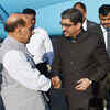 Rajnath Singh shakes hands with Indian High Commissioner to Islamabad, Gautam Bambawale (R), upon arrival at airport in Islamabad, Pakistan, 03 August 2016. (EPA)