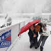 New York residents Freedman Zheng (C) and Patti Fuertez duck under the cover of their umbrella as ice rink technician Matt Davis clears snow from the rink at Bryant Park on December 19, 2008 in New York. (AP Photo/Julie Jacobson) () New York residents Freedman Zheng (C) and Patti Fuertez duck under the cover of their umbrella as ice rink technician Matt Davis clears snow from the rink at Bryant Park on December 19, 2008 in New York. (AP Photo/Julie Jacobson) /news/world/snowstorm-in-ny/eventshow/3868829.cms03