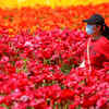 Visitors pose and take pictures among the 50 acres of Ranunculus flowers at 'The Flower Fields' in Carlsbad, California.