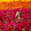 Emma McCain has her picture taken by her friend Norah Miller as they visit the 50 acres of Ranunculus flowers at 'The Flower Fields' in Carlsbad, California.