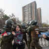 A demonstrator is arrested by riot police. Thousands of students marched between Plaza Italia (Italy Square) and Estacion Mapocho (Mapocho station), demanding improvements and protection to public education and a regulatory framework that eliminates the profit in private education. The march ended in clashes between demonstrators and the riot police. Santiago, Chile, on June 23, 2016. (Getty Images) /news/world/students-clash-with-police-in-santiago/eventshow/52900822.cms03