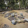 The remains of a truck is submerged in mudflow from Mayon Volcano triggered by heavy rains from Typhoon Goni in the town of Guinobatan, Albay province, central Philippines.