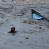 A fisherman swims to shore after his boat is capsized due to high waves ahead of the expected landfall of Cyclone Vayu at Veraval, India on June 12, 2019. (Reuters) ()See more of :
