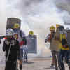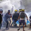 (AFP)Anti-coup protesters use fire extinguishers to reduce the impact of teargas fired by riot policemen in Yangon, Myanmar.