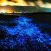 Bioluminescent squid also known as the Firefly Squid, which is growing to a length of only 3 inches. The glowing firefly squids on the shore is a very rare event that happens only a few days during a limited time every year.
