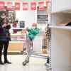 People wearing protective face masks stand next to empty shelves in a supermarket, as the number of worldwide coronavirus cases continues to grow, in London, Britain. (Reuters) /news/world/uk-shuts-down-social-life-amid-coronavirus/eventshow/74672108.cms02