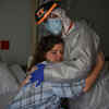 Dr. Joseph Varon, the chief medical officer at United Memorial Medical Center, hugs Christina Mathers, 43, a nurse from his team who became infected with COVID-19, at United Memorial Medical Center (UMMC), during the coronavirus disease (COVID-19) outbreak, in Houston, Texas.