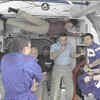 Combined crew of the International Space Station and the Space Shuttle Discovery wave after speaking with President Barack Obama from the orbital outpost on March 24, 2009. (Reuters/NASA) () Combined crew of the International Space Station and the Space Shuttle Discovery wave after speaking with President Barack Obama from the orbital outpost on March 24, 2009. (Reuters/NASA) /news/world/us-space-shuttle-discovery/eventshow/4317254.cms03