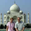 Russian President Vladimir Putin and his wife Lyudmila sit in front of the Taj Mahal while touring the city of Agra on October 4, 2000. Putin told India's parliament that ties with New Delhi would remain a key element of Moscow's foreign policy, building on the first day of a visit aimed at rekindling Soviet-era amity.