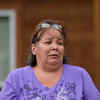 Kasey Johnny awaits news of family members after a wildfire that raged through the town of Lytton forced residents to evacuate, in nearby Boothroyd, British Columbia, Canada.