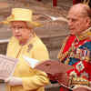 In this image taken from video, from left, Britain's Queen Elizabeth II, Britain's Prince Philip, and Britain's Prince Charles sing during the ceremony at Westminster Abbey for the Royal Wedding in London on Friday, April, 29, 2011 - Photogallery
