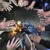 People warming themselves around a bonfire on a cold day in Guwahati - Photogallery