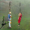 Trekking enthusiast Jaydeep Jadhav married Reshma Patil while on a temporary 350-foot-long three-line ropeway in Kolhapur. The couple and a priest hung from the three ropes overhead as they performed the rituals on Sunday (July 31) over the 250-foot-deep Jakhani valley, 70km from Kolhapur. (BCCL)See more of :