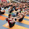 People participate in a Yoga programme at Times Square in New York.  (PTI)