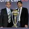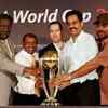 (L-R)Clive Lloyd , Arvinda Dsilva , Michael Bevan, Dilip Vengsarkar and Balvinder Sandhu unveil the 2011 World Cup trophy in Mumbai. (PTI)