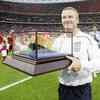 England's David Beckham receives his 100th cap award before kick off of their International friendly between England and USA at Wembley Stadium in London. (AFP Photo/Ian Kington)