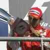 Ferrari's Formula 1 driver Felipe Massa of Brazil holds his trophy at the Spa-Francorchamps race track. (Reuters/Pascal Rossignol)