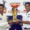 Pakistan cricket captain Shoaib Malik (L) and Indian cricket captain Anil Kumble (R) hold the Indian Oil Cup during its unveiling in New Delhi on November 21, 2007 - Photogallery