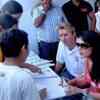 Actress Preity Zinta and cricketer Brett Lee selling IPL match's tickets to young cricket lovers at PCA stadium Mohali on Saturday, April 12, 2008. (PTI Photo)