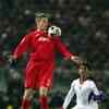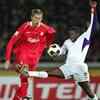 Peter Crouch of Liverpool FC of England jumps to keep the ball as Ronald Gonzalez of Deportivo Saprissa of Costa Rica looks on during the semi-final of FIFA Club World Championship Toyota Cup 2005 in Yokohama, west of Tokyo, Thursday, December 15, 2005. With Couch's first goal European club champion Liverpool leads their North and Central American counterpart Deportivo Saprissa 2-0 in the first half. (AP Photo/Shizuo Kambayashi)
