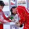 Ryan Briscoe (C) of Australia, driver of the #6 Team Penske Dallara Honda, celebrates with second placed teammate Helio Castroneves (L) of Brazil and third placed Scott Dixon, driver of the #9 Target Chip Ganassi Racing Dallara Honda after winning the IRL IndyCar Series - Photogallery