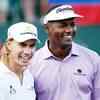 Camilo Villegas (L) of Colombia and Vijay Singh (R) of Fiji smile during the final round of The Tour Championship at East Lake Golf Club on September 28, 2008 in Atlanta. (AFP Photo/Streeter Lecka)
