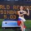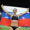 Russia Yelena Isibaeva celebrates her world record after jumping 5.03m in the women's Pole Vault at the Athletics IAAF Golden Gala in Rome's Olympic Stadium on July 11, 2008. (AFP Photo/Tiziana Fabi)