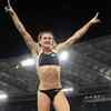 Russia Yelena Isibaeva jubilates after setting a world record of 5.03m in the women's Pole Vault at the Athletics IAAF Golden Gala in Rome's Olympic Stadium on July 11, 2008. (AFP Photo/Tiziana Fabi)