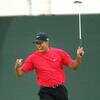 Tiger Woods of the United States reacts after putting a birdie on the 18th to win the Dubai Desert Classic golf tournament in Dubai, United Arab Emirates, Sunday, February 3, 2008. (AP Photo/Peter Morrison)