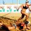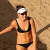 An international player during a practice session of World Beach Volleyball at Elliots Beach in Chennai. (BCCL/B A Raju)