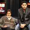 Amitabh Bachchan (L) and Abhishek Bachchan (R) on the sets of the new television series Big B's Den on NDTV imagine. (AFP Photo)