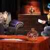 Amitabh Bachchan interacting with his son Abhishek (R) on the sets of the new television series Big B's Den on NDTV imagine. (AFP Photo)