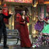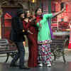 Raveena Tandon dances with Chunky Pandey and Sunil Grover on the sets of the popular TV show Mad In India, in Mumbai. (Pic: Viral Bhayani)