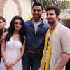 Abhishek Bachchan with Riddhi Dogra and Raqesh Vashisth on sets of the popular TV serial 'Maryada - Lekin Kab Tak' in Mumbai on April 18, 2011. (Pic: Viral Bhayani )