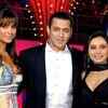 Lara Dutta, Salman Khan and Rani Mukherjee on the grand finale episode of the game show Dus Ka Dum. (BCCL Photo)