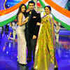 (L-R) Judges, Malaika Arora Khan and Karan Johar get ready for the performances at the launch of talent show India's Got Talent- Season 5, held in Mumbai, on January 7, 2014. (Pic: Viral Bhayani)