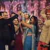 Sanjay Dutt, Salman Khan, Mahek and Juhi Parmar at the grand finale of 'Bigg Boss 5'. (Pic: Viral Bhayani)