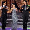Shah Rukh Khan, Priyanka Chopra and Hrithik Roshan perform together during 'Just Dance' finale at Filmcity, Mumbai. (PTI)
