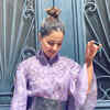 Hina Khan tied her hair up in a bun and went for minimal makeup, which complemented her lavender outfit. (Photo: Instagram)