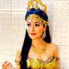 Sara Khan during the shooting of her show 'Santoshi Maa Sunayein Vrat Kathayein.'