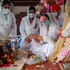 Divya Bhatnagar's family members during her prayer meet in Mumbai.